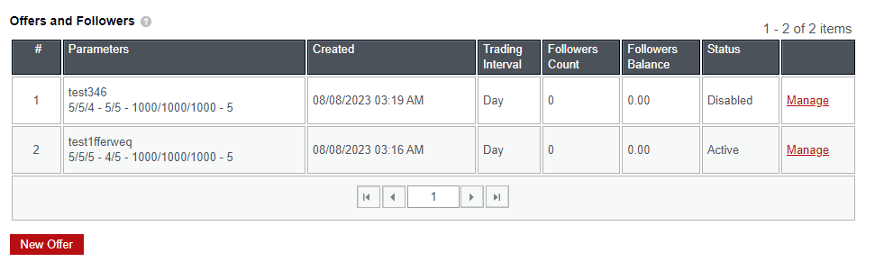 ب- انقر على "عرض جديد". يعرض جدول العروض والمتابعين معلومات حول جميع العروض وحالتها وعدد المتابعين وإجمالي "رصيد المتابعين" لكل عرض.