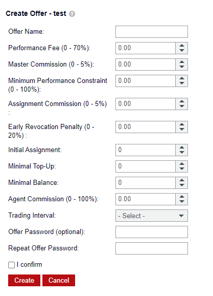يلاحظ! بعد إنشاء عرض الأسعار، يمكن تعديل "كلمة المرور" و"معلمات لجنة الوكالة" فقط.