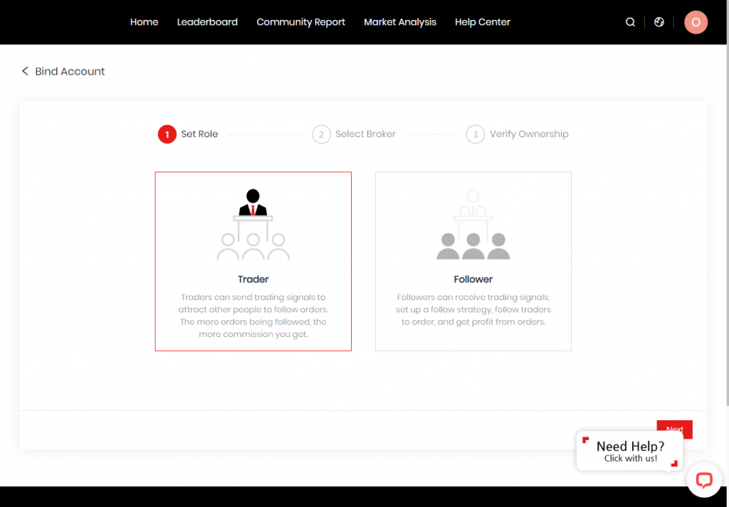 قم بتسجيل الدخول إلى Doo Prime User Center ، وانقر فوق "Community Trading" على الجانب الأيسر من الصفحة الرئيسية ، وانقر فوق "Outrade Account Management" ، وانقر فوق Add Account على الجانب الأيمن من الصفحة ، وحدد دور "Trader" أو "Follower" ، وأخيرًا ربط الحساب الذي هو Can.