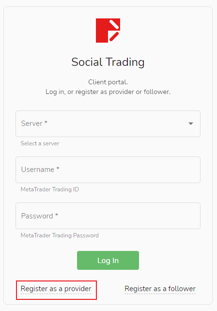 On the [My Account] page of the signal source, you can add a new trading account by clicking the green [Create] button. However, this account cannot be used to log in, and can only be selected as a signal source, follower or set up to receive performance fees.