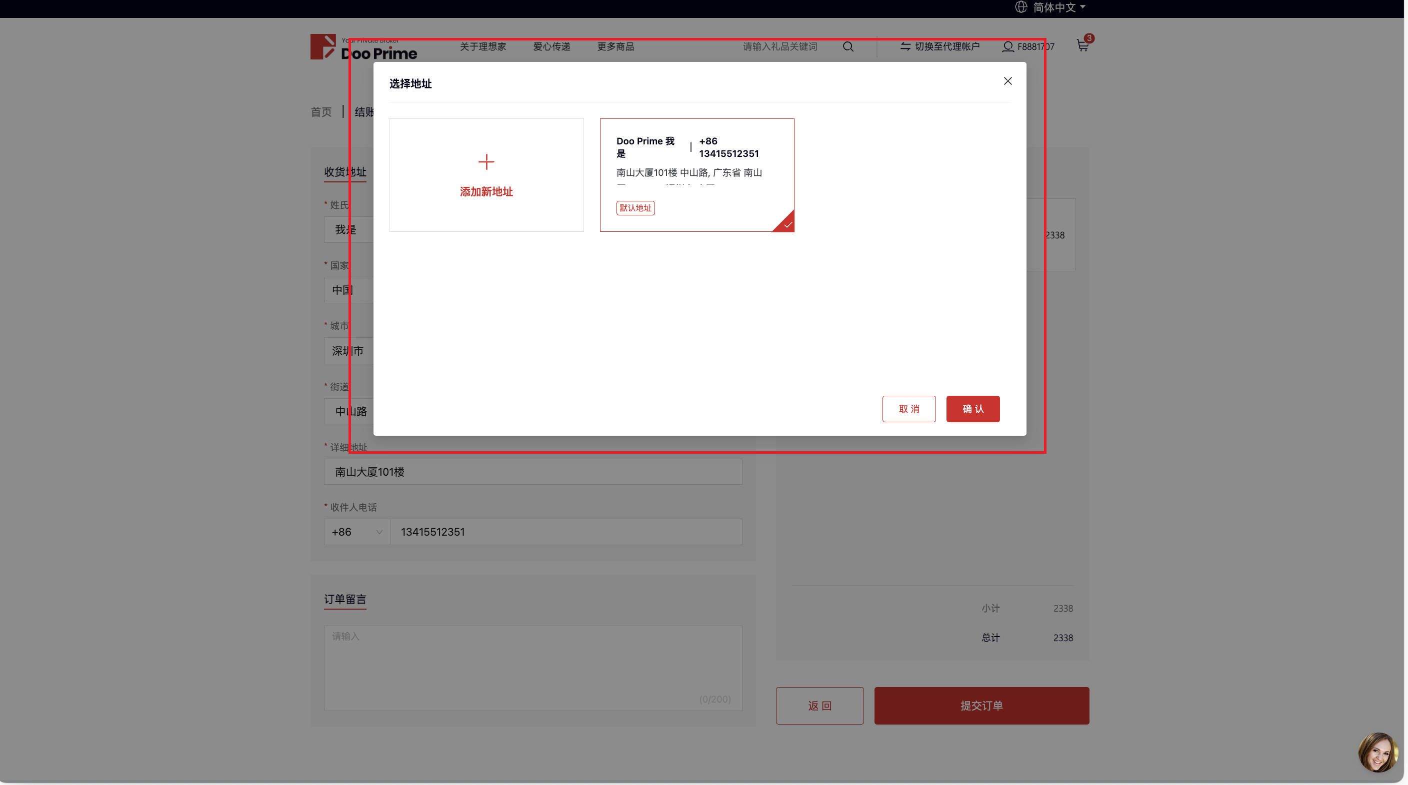- Complete los datos de entrega y envíe el pedido. También puede configurar una dirección predeterminada y almacenar hasta 20 direcciones personalizadas.