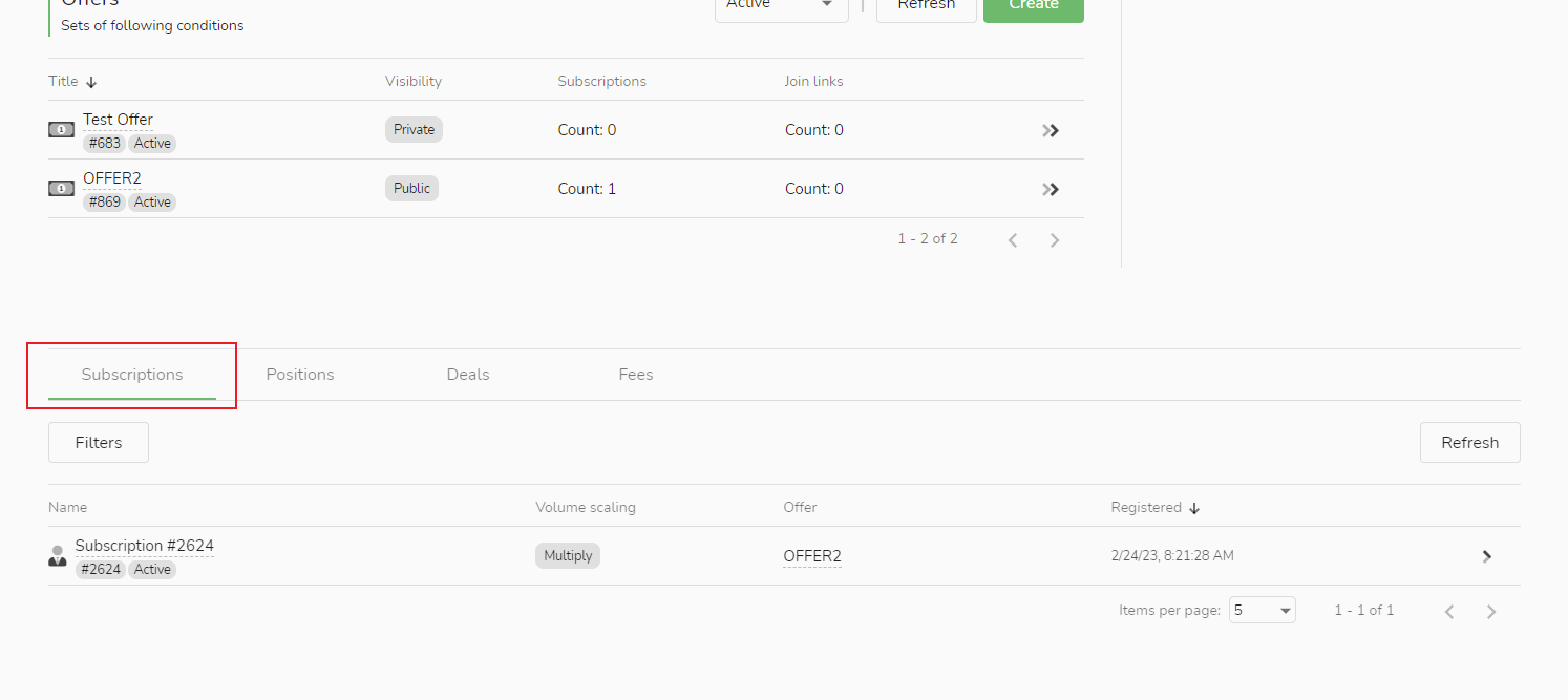 En la parte inferior de la información de la fuente de señal y la página de asignación de pedidos, puede ver la lista de seguidores y puede elegir eliminar al seguidor haciendo clic en la flecha en el lado derecho del seguidor.