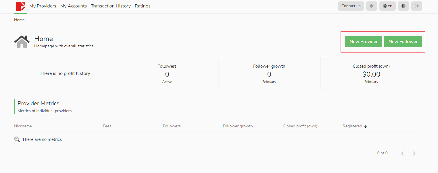 Las cuentas comerciales creadas con éxito se mostrarán en la columna [Mi cuenta] en orden. Después de crear con éxito una cuenta comercial aquí, puede volver a la página de inicio y seleccionar [Agregar fuente de señal] o [Agregar seguidor] según sus necesidades, pero tenga en cuenta que el seguidor no puede seguir la fuente de señal creada por él mismo.