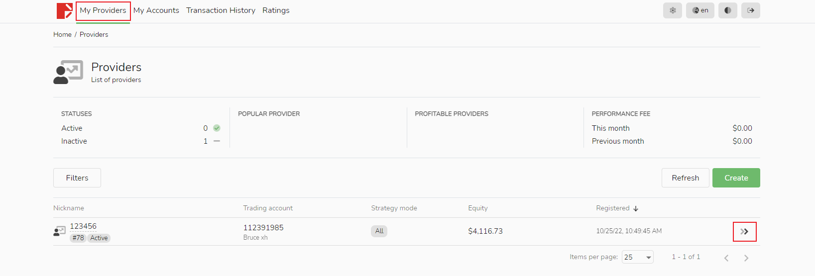 1. Na guia "Minhas fontes", clique na estratégia de sinal que deseja arquivar.