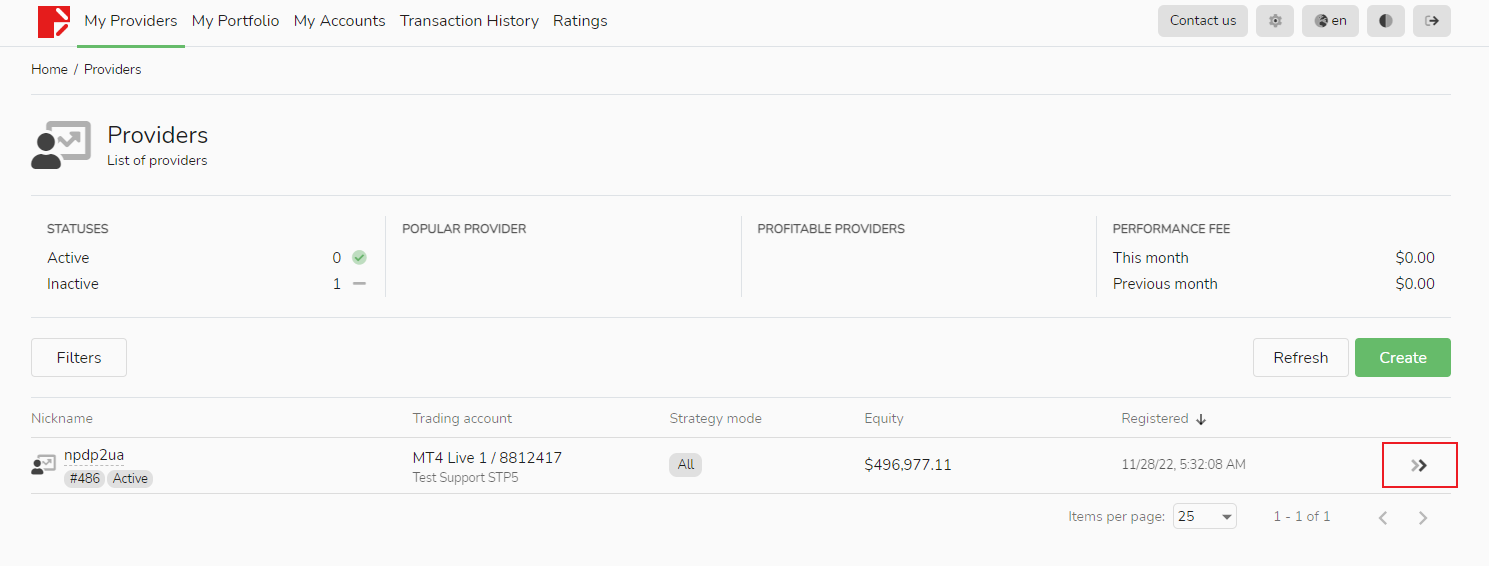 Na parte inferior da página de informações da fonte de sinal e alocação de pedidos, você pode visualizar a lista de seguidores e pode optar por excluir o seguidor clicando na seta no lado direito do seguidor.