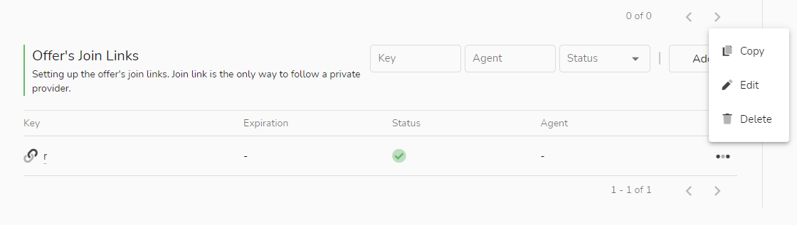 Depois que o link de adesão for criado com sucesso, ele será exibido na posição acima. Este link de adesão terá os parâmetros da conta de negociação MetaTrader do introdutor, então os seguidores registrados através do link de adesão serão atribuídos diretamente ao apresentador correspondente.