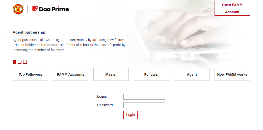 b. Clique em "Abrir conta PAMM" no canto superior direito da página inicial.