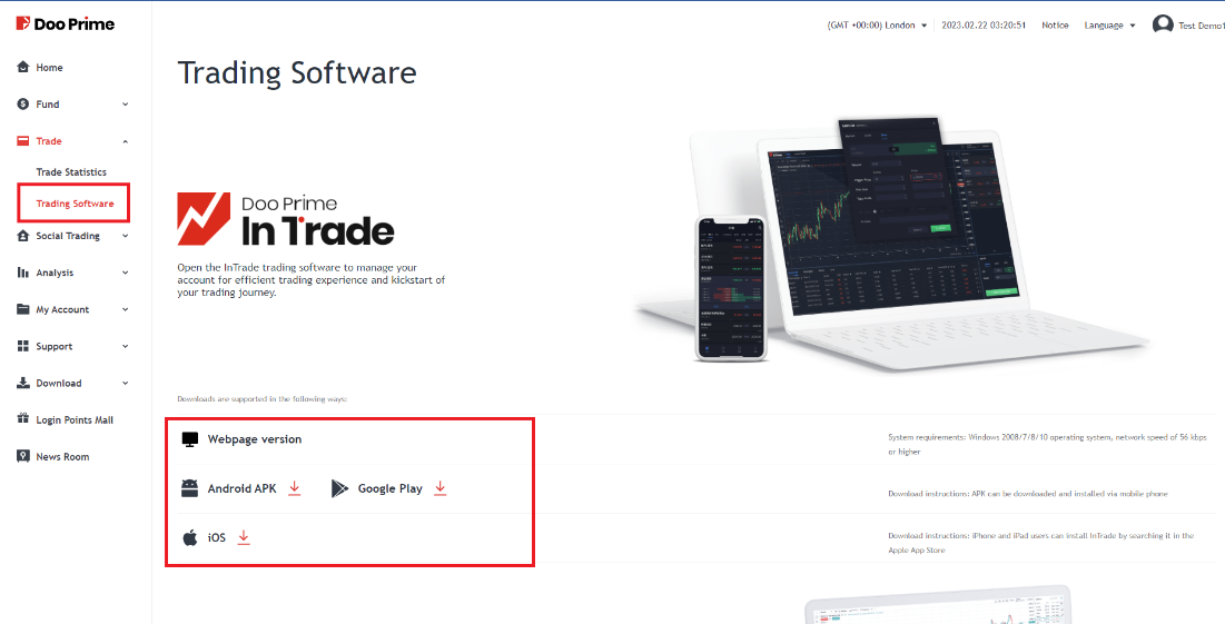 Você pode optar por fazer o download diretamente do site oficial do Doo Prime ou fazer login no centro do usuário do Doo Prime.