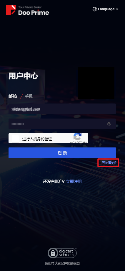 忘记 D Prime 用户中心的真实账户密码怎么办?