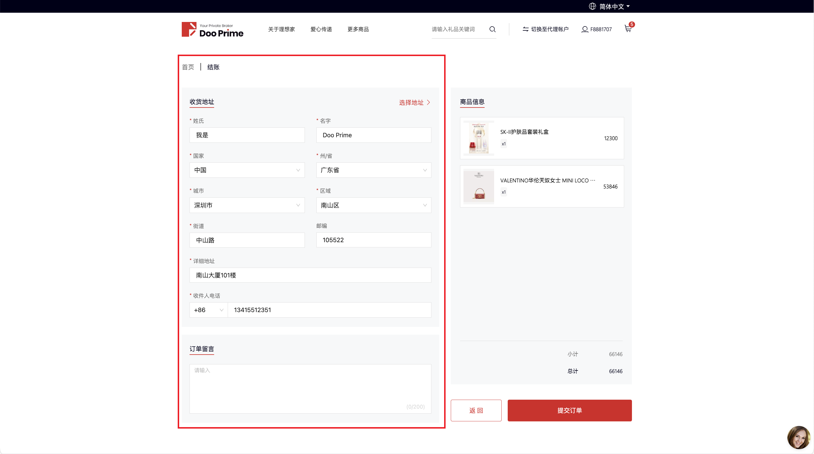 - 填写收件信息并提交订单即。亦可设定默认地址,最多可储存20个自定义地址。