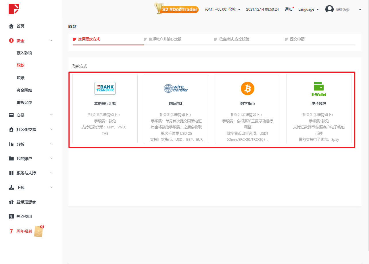 4. 转跳到相关存款渠道的界面后,按指示进行取款即可。