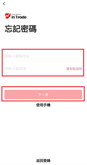 如您忘记了 D Prime InTrade 的密码,可于登录界面点击「忘记密码」。