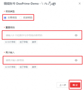 3. 選擇您需要重置的密碼類型,重置一組8-15 位數字與字母組合的新密碼,再次輸入新密碼,然後按確定。重置密碼後需要通過電郵或手機進行驗證,完成後即可啟用新密碼。