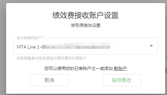2. 在彈窗內選擇想要接收績效費的賬戶,點擊「保存更改」即可。