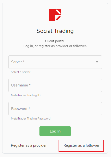 Trên trang [Tài khoản của tôi] của người theo dõi, bạn có thể thêm tài khoản giao dịch mới bằng cách nhấp vào nút [Tạo] màu lục. Tuy nhiên, tài khoản này không thể được sử dụng để đăng nhập và chỉ có thể được chọn làm nguồn tín hiệu, người theo dõi hoặc thiết lập để nhận phí hiệu suất.