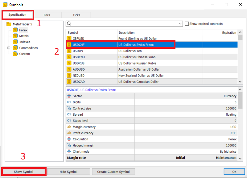 3.4 Cách xem báo giá thị trường trong MT5 và tăng giảm thông số hiển thị của “cột” báo giá thị trường